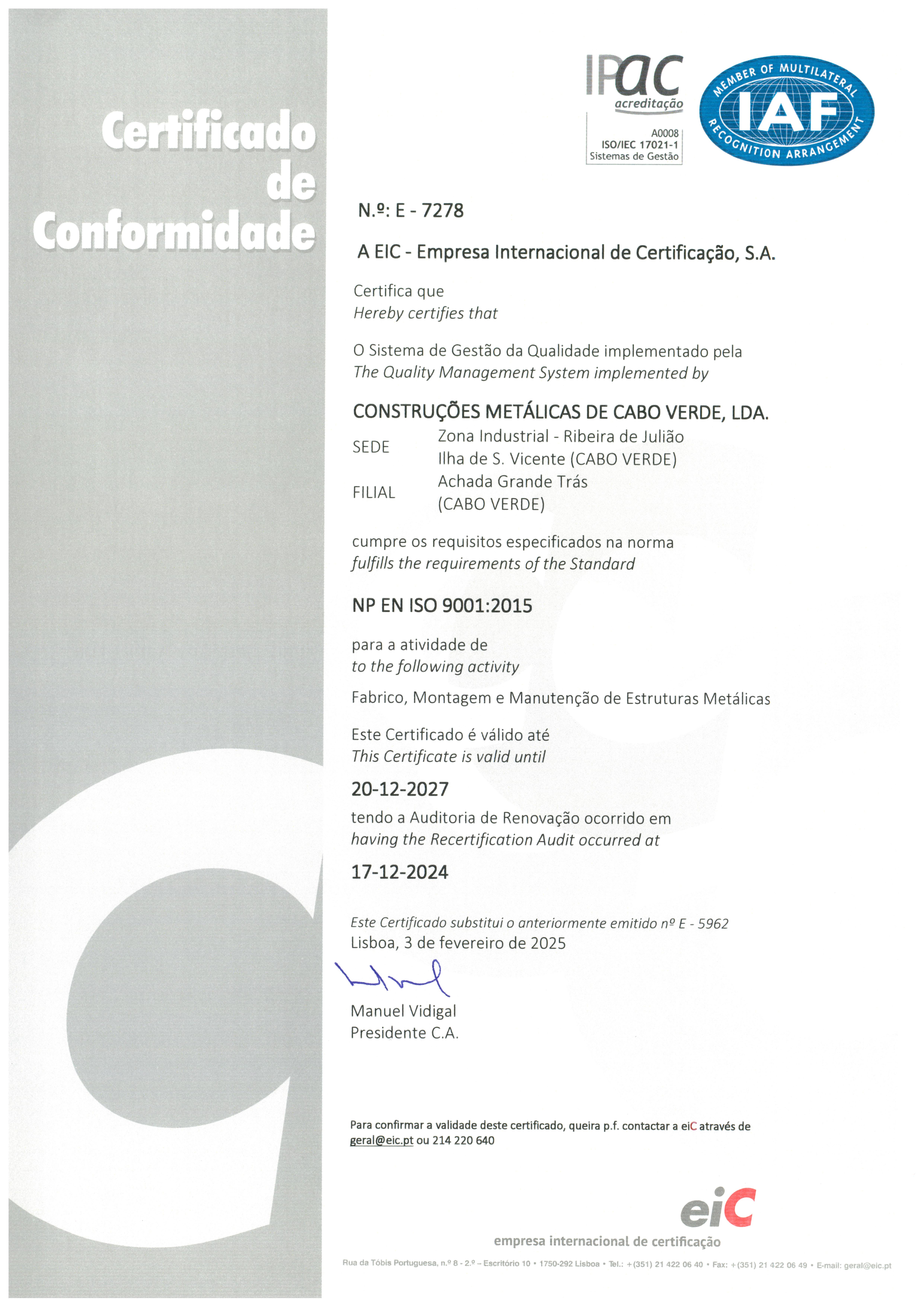 A Construções Metálicas de Cabo Verde trilha um caminho de crescimento consubstanciado na qualidade dos seus serviços, com enfoque nos seus clientes e no envolvimento dos seus colaboradores.